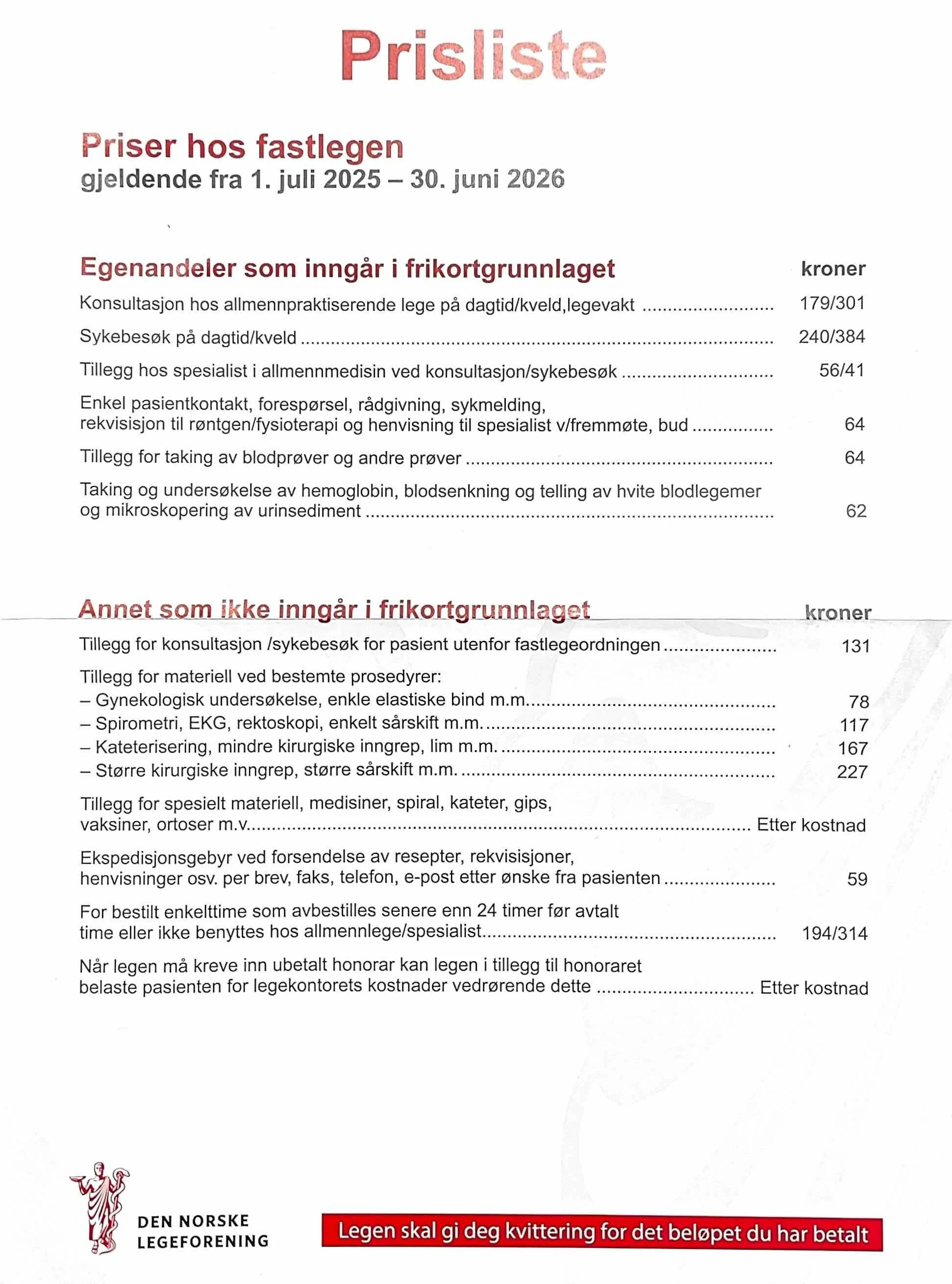 Legeattest parkeringstillatelse for forflytningshemmede: 400,-